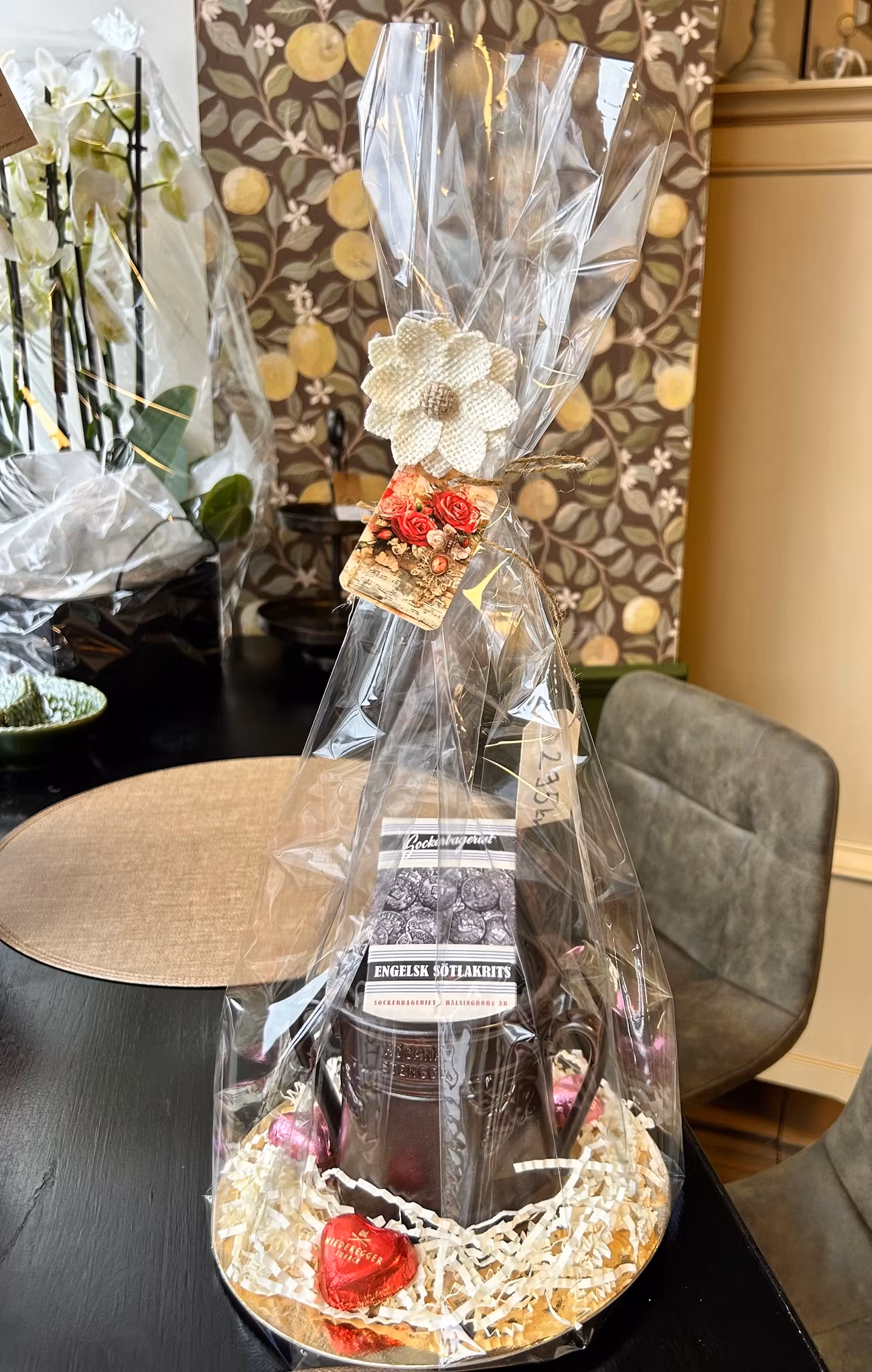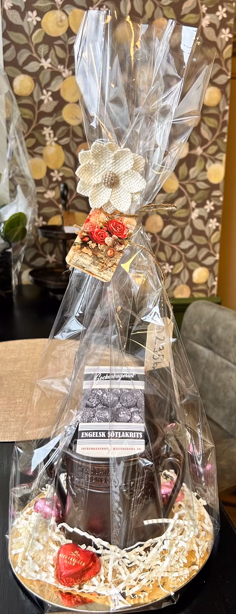 - Kort, cellofanpåse med botten samt vacker dekoration