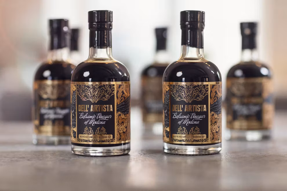 Dellâ Artistas Aceto Balsamico di Modena aÌr en IGP maÌrkt balsamico gjord av de finaste roÌda druvorna utanfoÌr Modena i norra Italien. Balsamicon tillverkas enligt hundratals aÌrs traditionella metoder och lagras i maÌnga aÌr paÌ ektunnor.