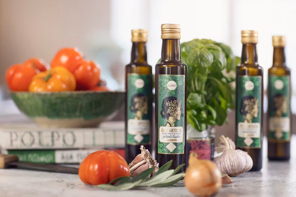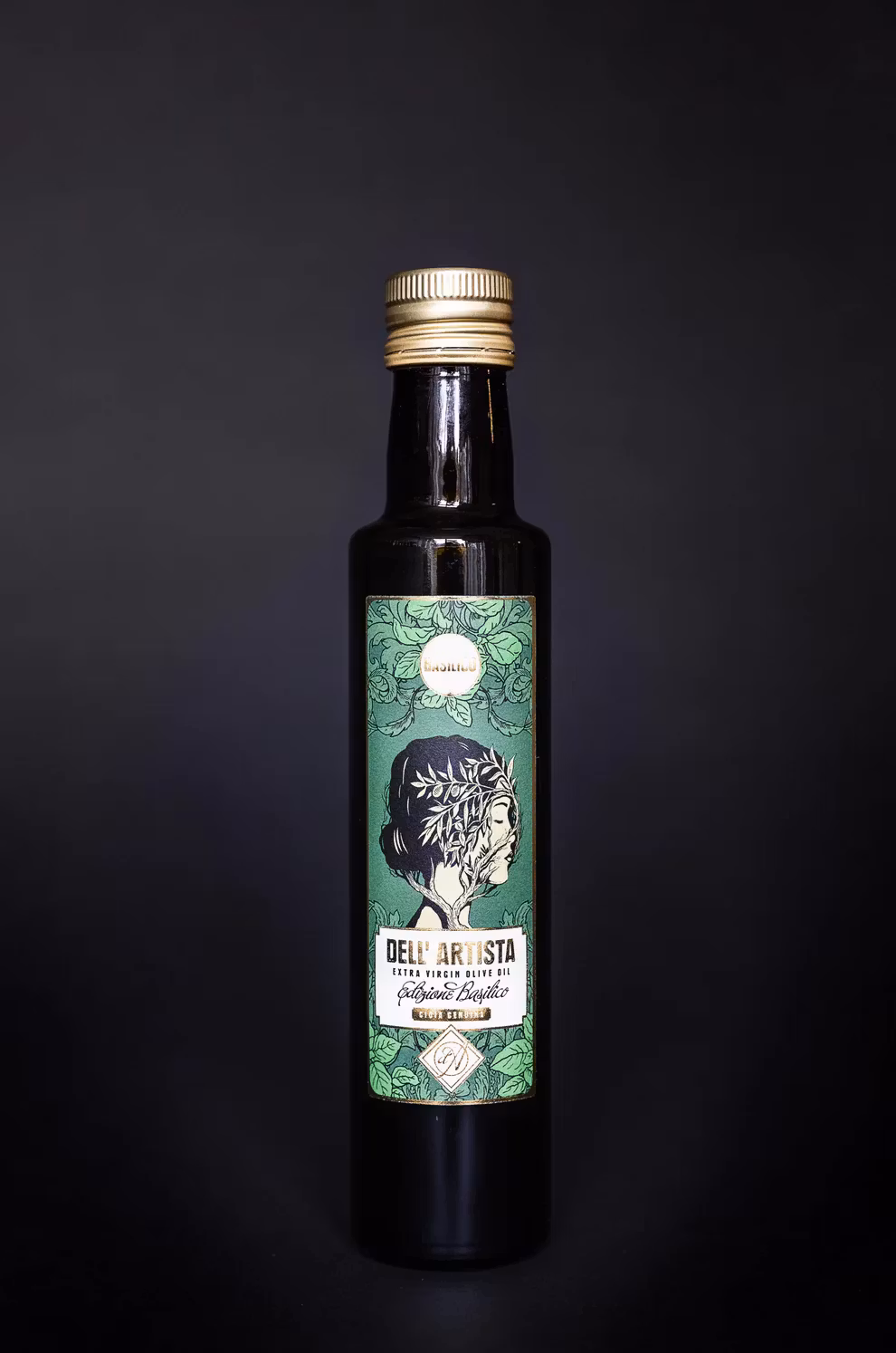 Dell’ Artista Edizione Basilico extra virgin olivolja erhållen från kallpressning av de bästa sicilianska oliverna från om rådena kring Partanna, Castelvetrano, Giuliana, Valderice och Castelluzzo. Oljan pressas med färska basilikablad. Oljan har en stark personlighet som kännetecknas av den härliga doften av färsk basilika och den delikat fruktiga smaken från olivolja.