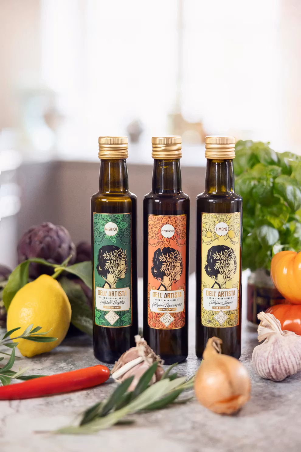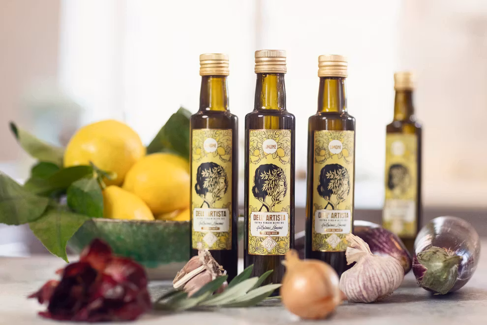 Dell’ Artista Edizione Limone extra virgin olivolja är gjord på en blandning av Biancolilla Cerasuolaoliver från Trapaniområdet och Nocellara del Beliceoliver som odlas i bergen runt Palermo och härligt doftande sicilianska citroner. Fin fruktighet och nötighet från olivolja blandas perfekt med fräschheten från citronen.