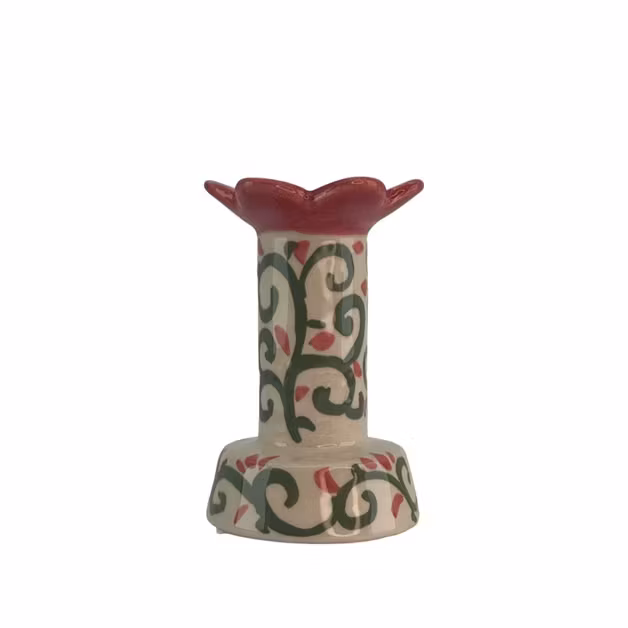 Ljusstaken är handmålad och tillverkad med en reaktiv glasyr vilket innebär att produkterna kan skilja sig åt i färg.