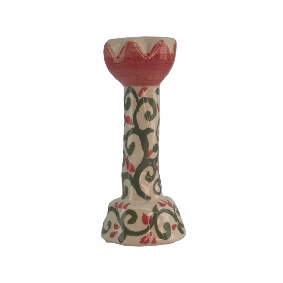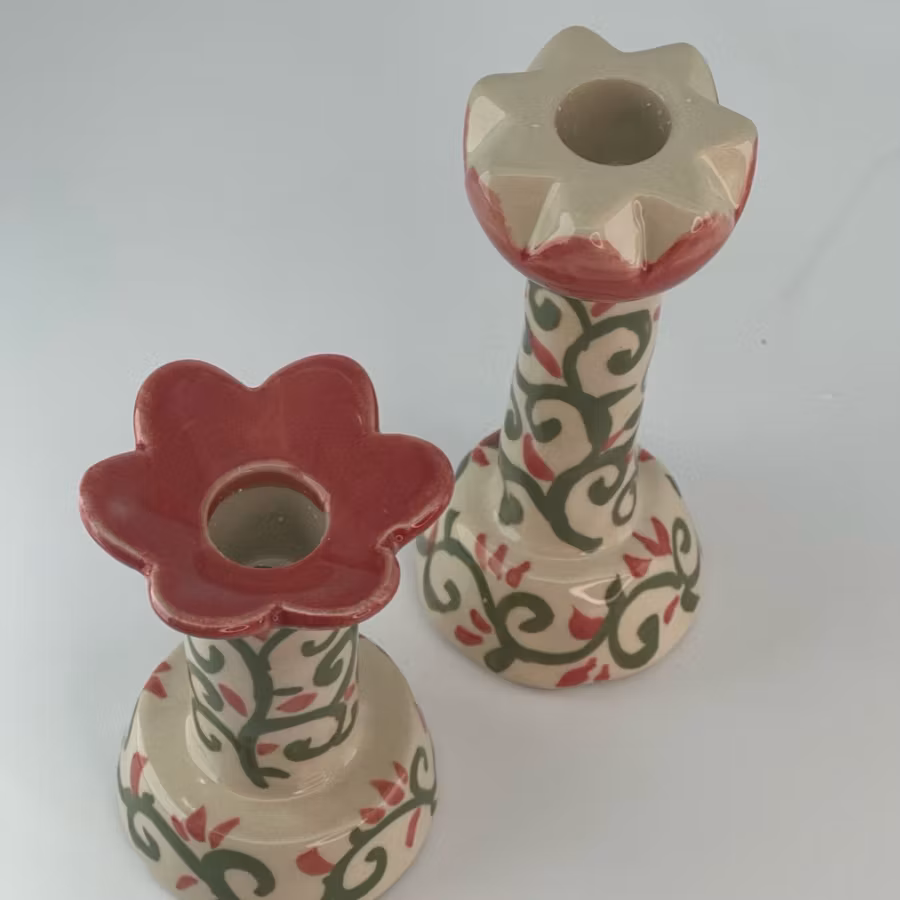 Ljusstaken är handmålad och tillverkad med en reaktiv glasyr vilket innebär att produkterna kan skilja sig åt i färg.