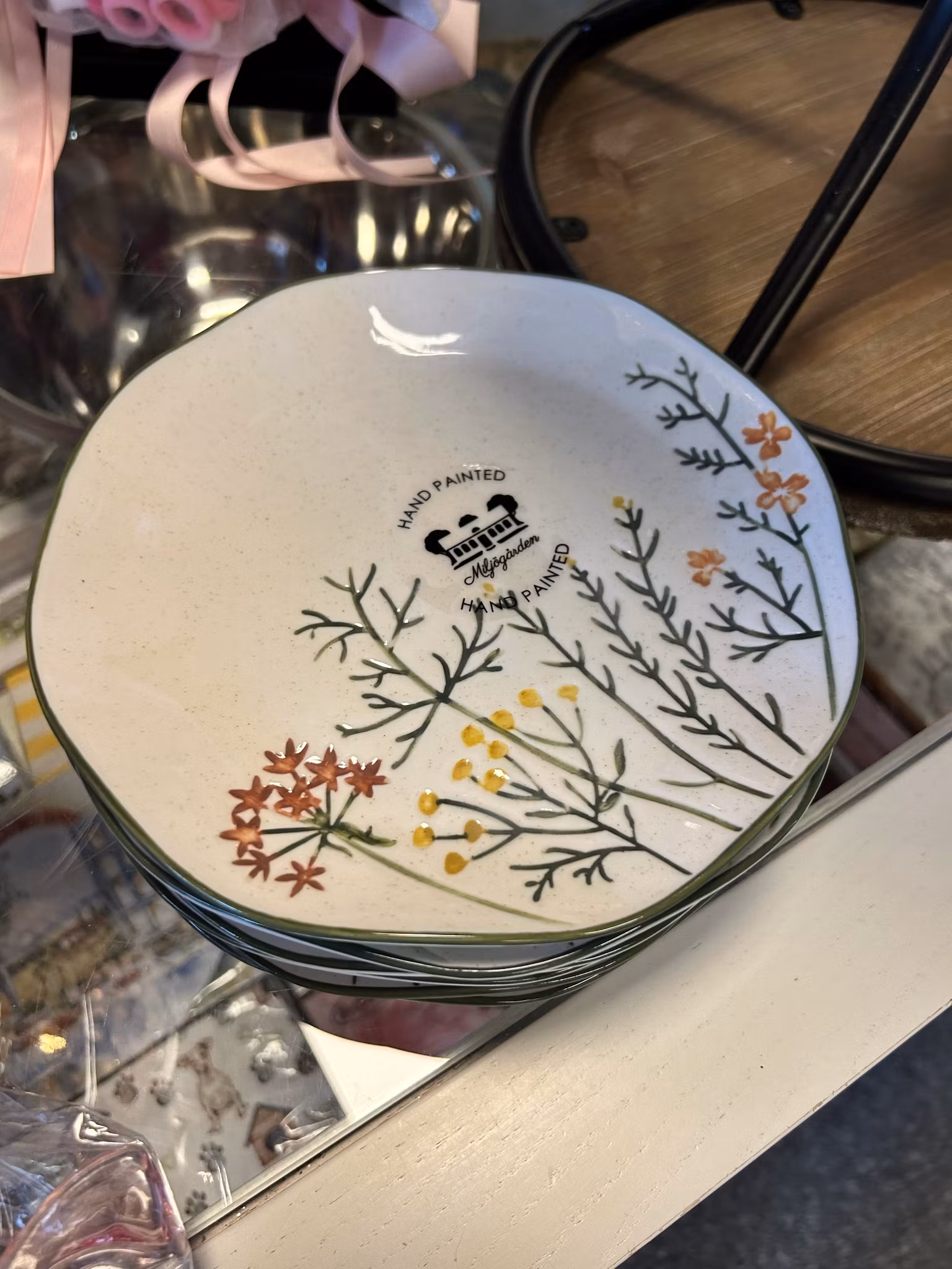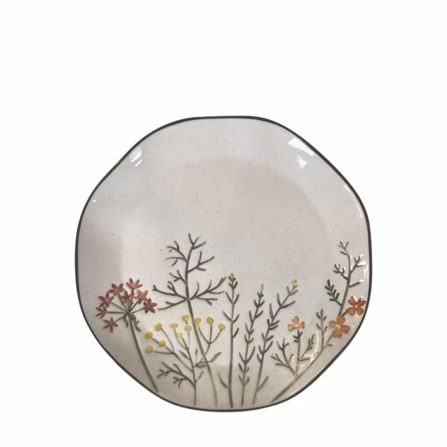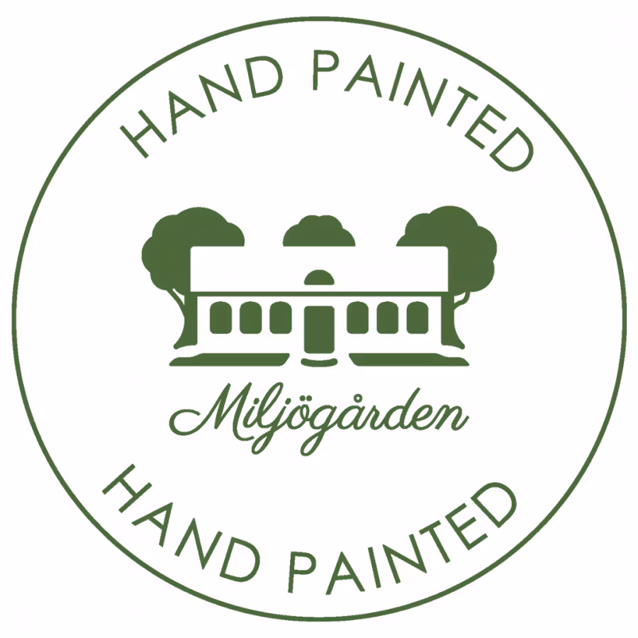 Tallriken är handmålad och gjort av stengods. Detta tål att användas i diskmaskin och i mikrovågsugn