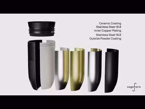 Tova termosmugg är en framtida klassiker för dig som är på språng. Den optimala termosmuggen när du vill njuta en dryck vid alla tillfällen. Tovas dubbelväggiga, vakuumisolerade design har ett högkvalitativt tunt kopparskikt på utsidan av innerväggen som ger bättre isolering för att hålla temperaturen. Den keramiska insidan och möjligheten att dricka ur muggen i 360 grader förstärker känslan av drycken och skapar den perfekta drickupplevelsen. Tovas stilrena pulverlackade look är formgjuten av återvunnet rostfritt stål utan sömmar och mönstrad med den karaktäristiska Sagaranden.