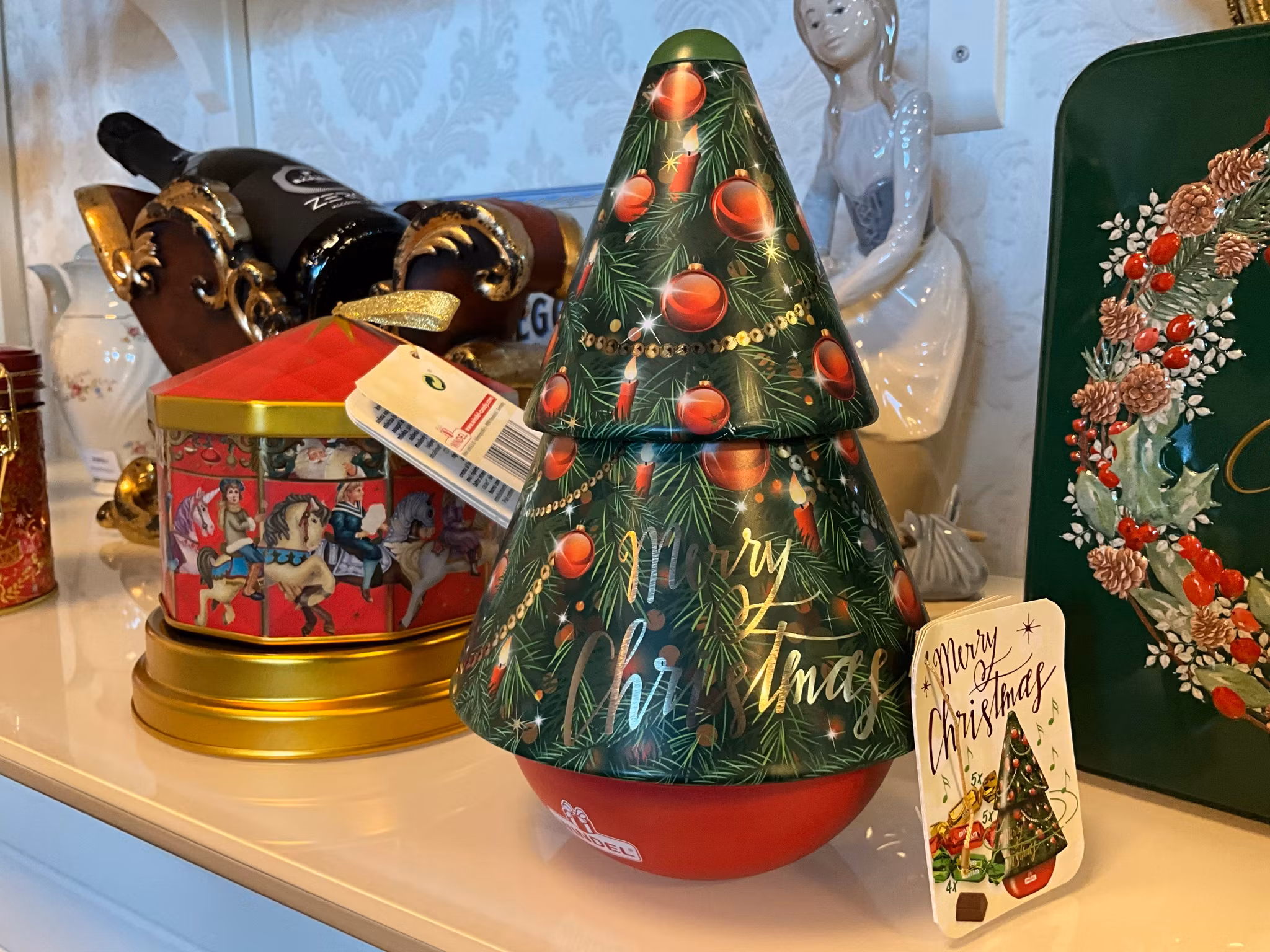 En stämningsfull julgåva i form av en dekorativ gran som både snurrar och spelar den klassiska melodin “Oh Tannenbaum”. Inuti döljer sig 150 g utsökta chokladpraliner med fyllningar av nougat, mjölkkräm och pralinékräm. Perfekt som både present och juldekoration – en riktig höjdpunkt under granen eller på julbordet.