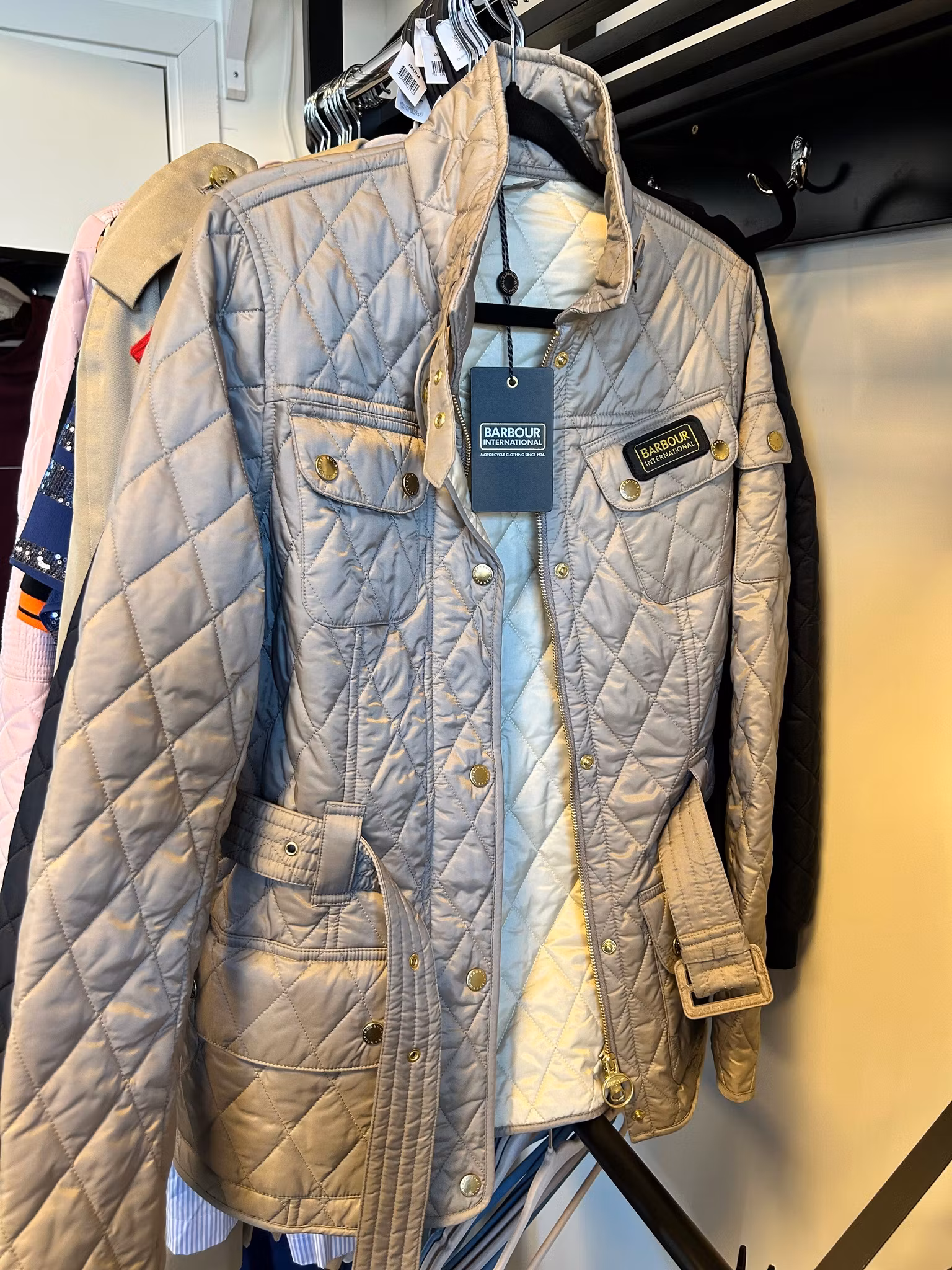 Quilatad jacka från Barbour International. Storlek 10, motsvarar ca storlek S, 36, dam.