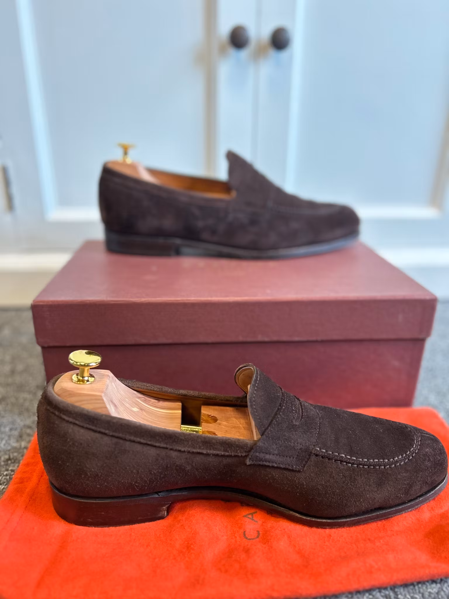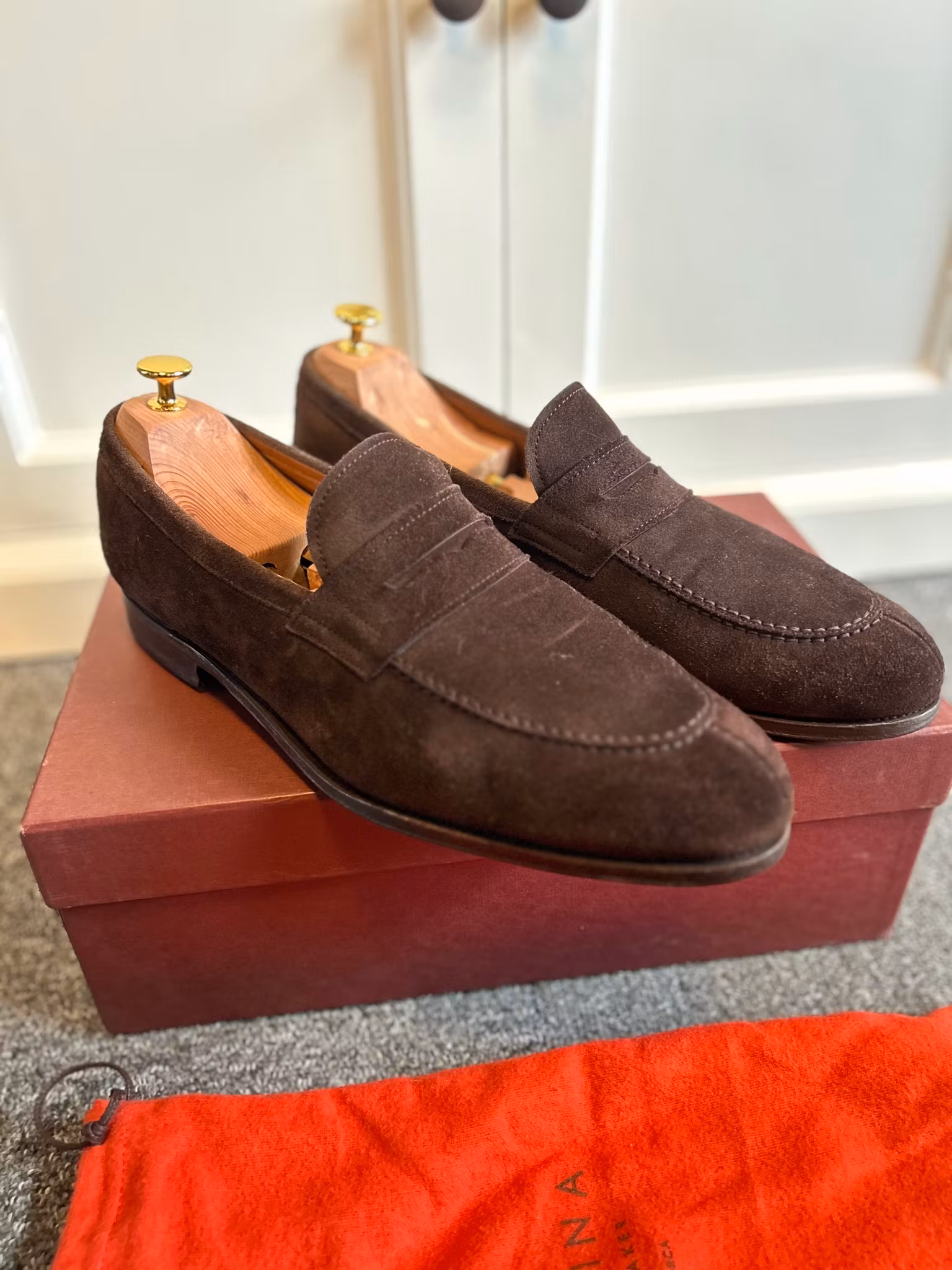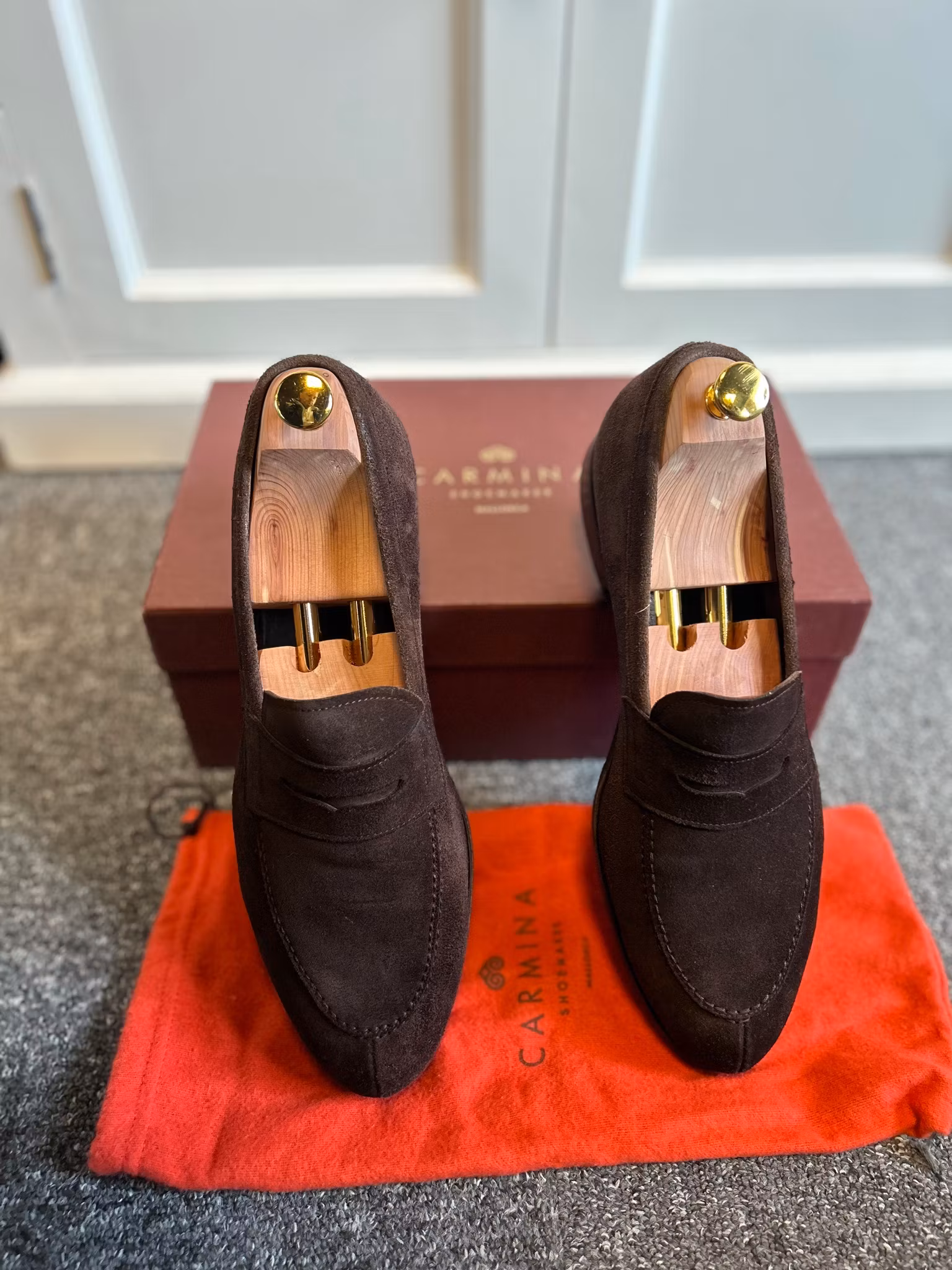 Fina handgjorda Penny Loafers från kvalitetsmärker Carmina. Tillhörande låda och skopåsar ingår. Tillverkade på Mallorca.