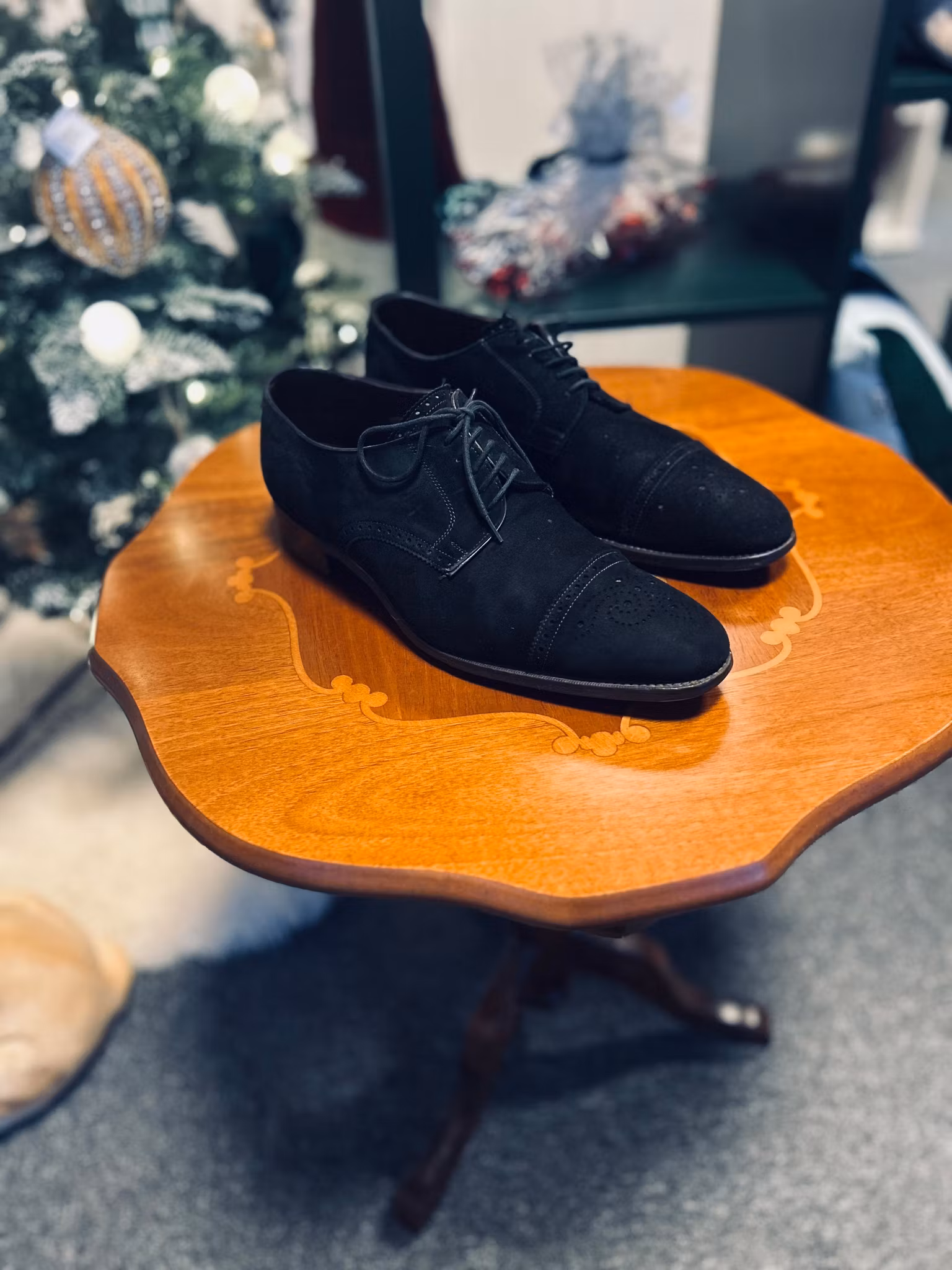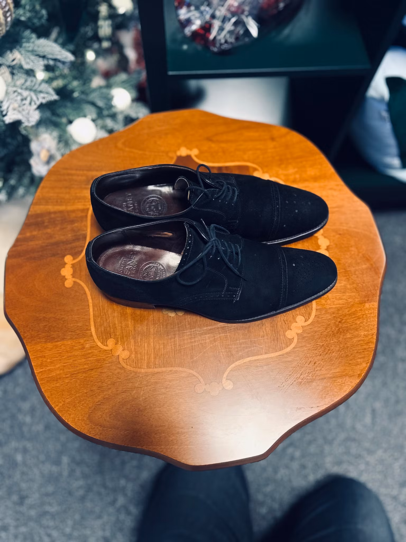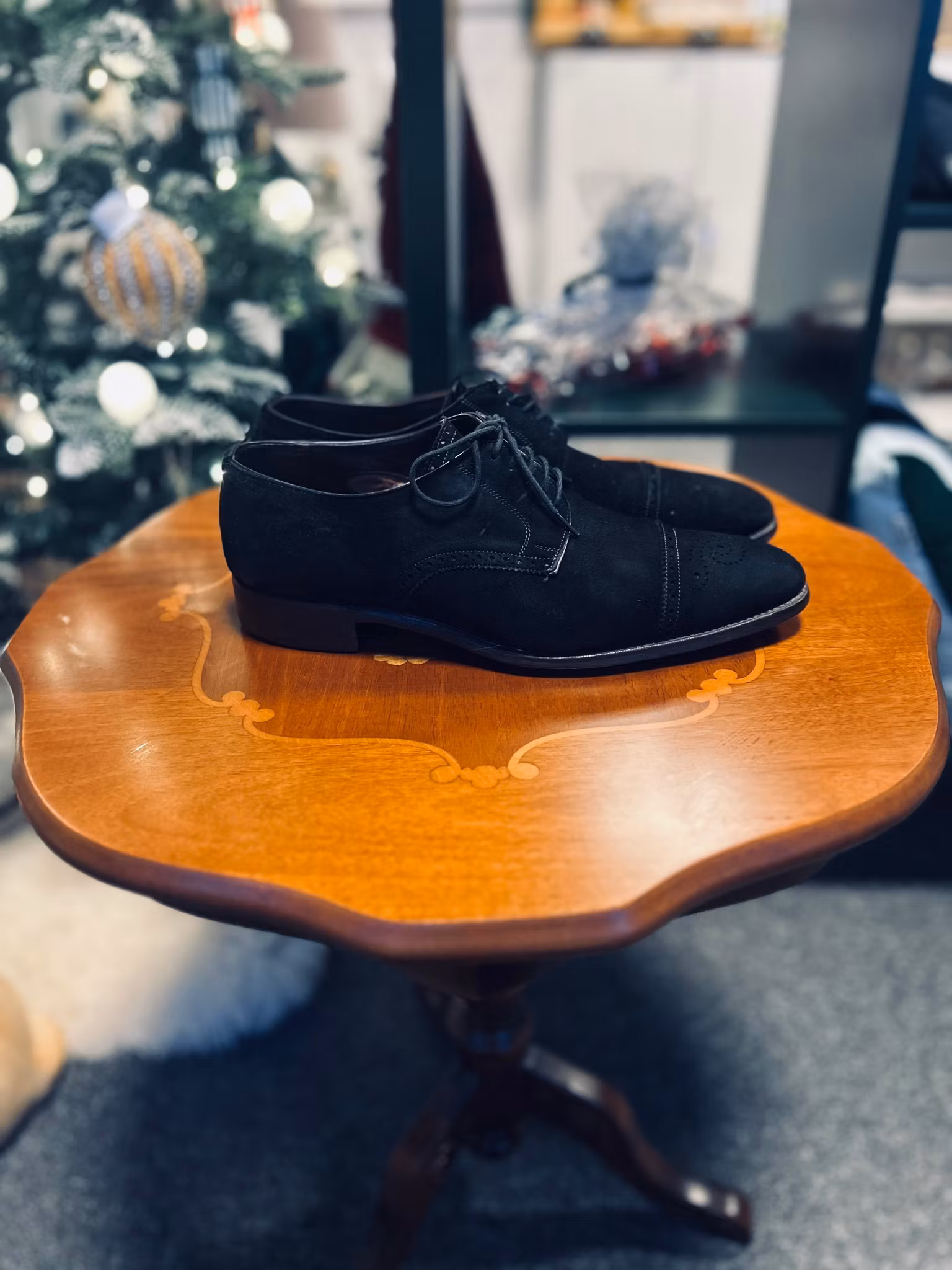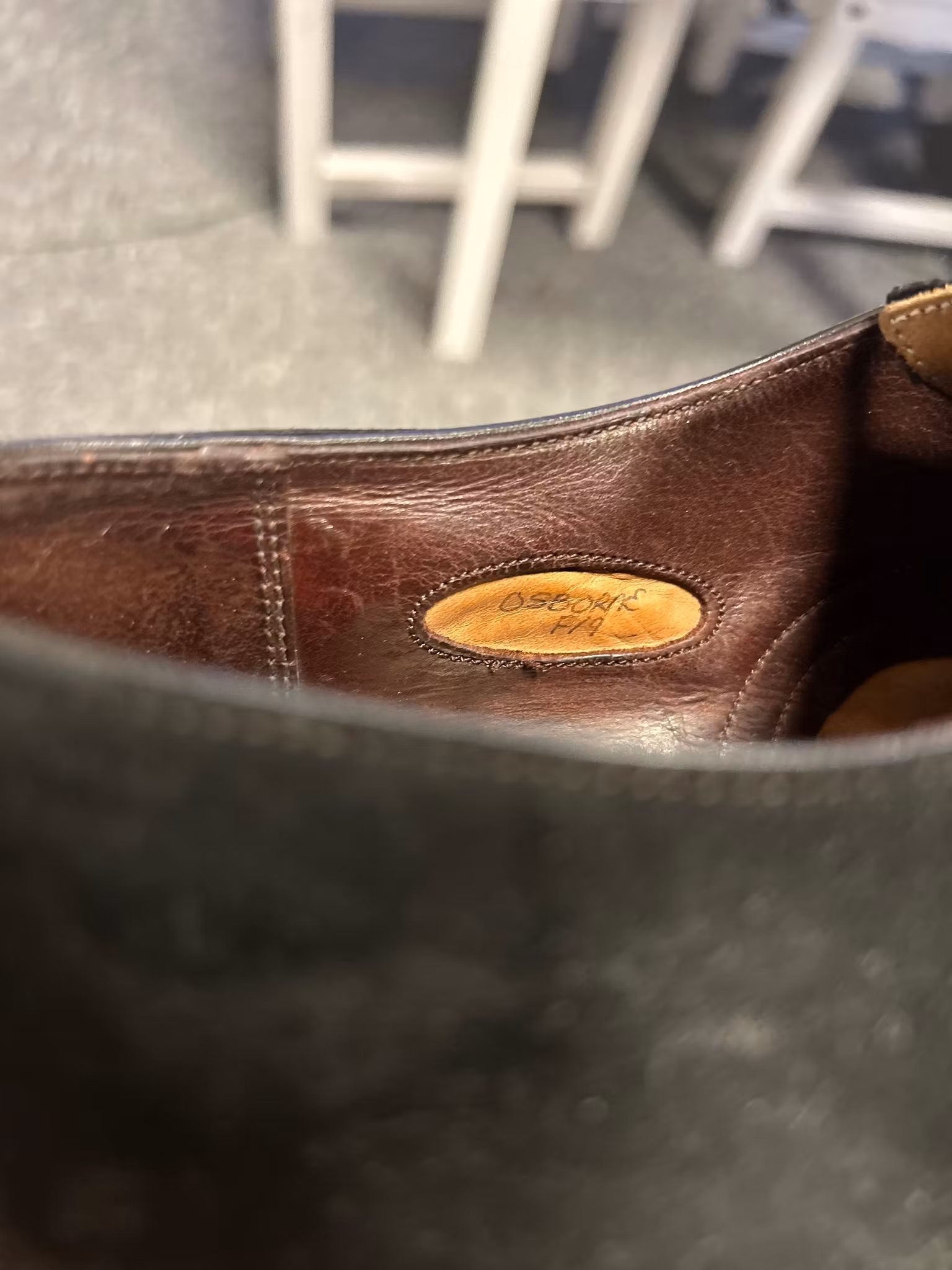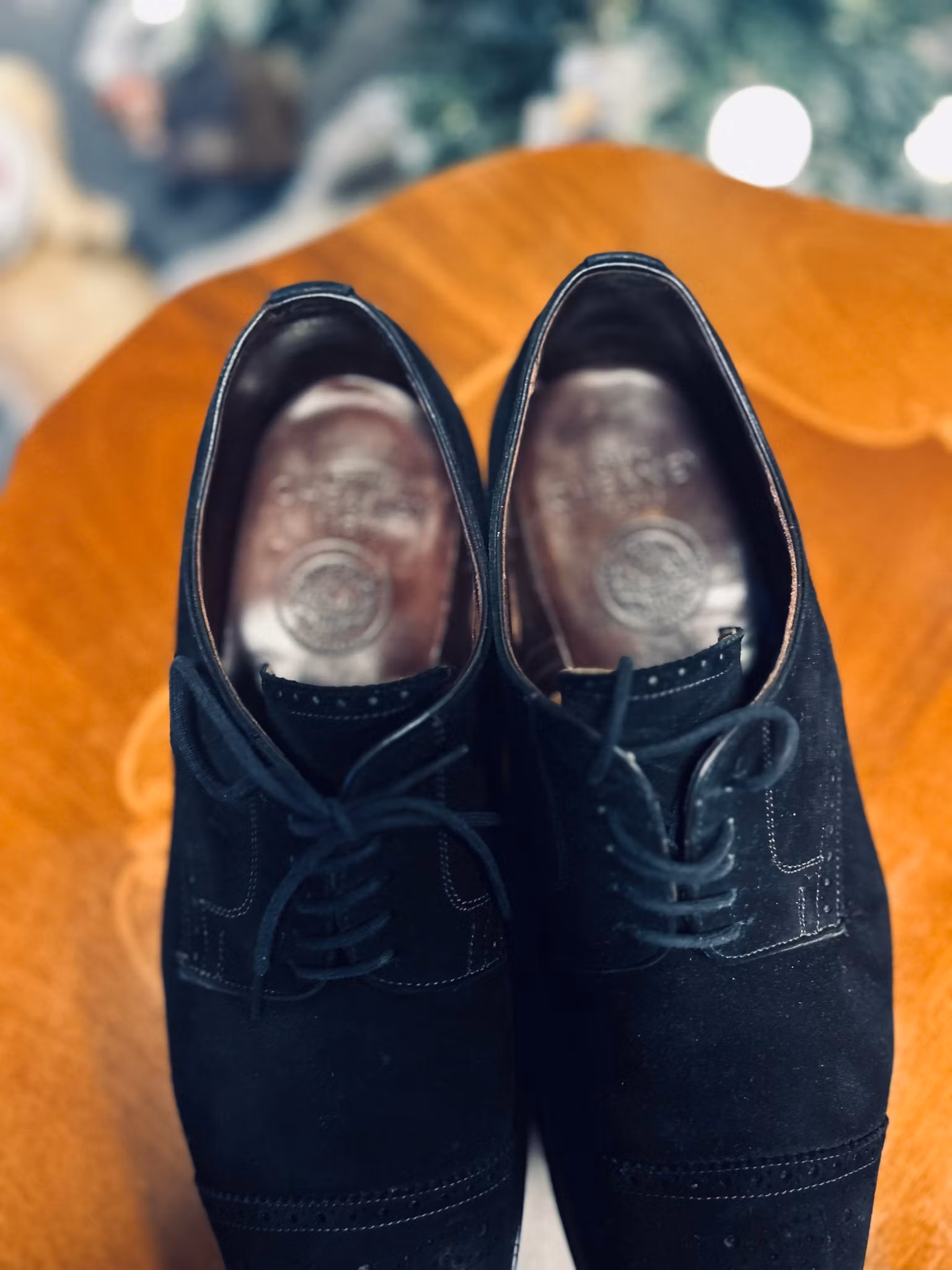 Engelska handgjorda kvalitetsskor från Cheaney & Sons i mocka med mycket liv kvar. Svart färg i storlek 9F