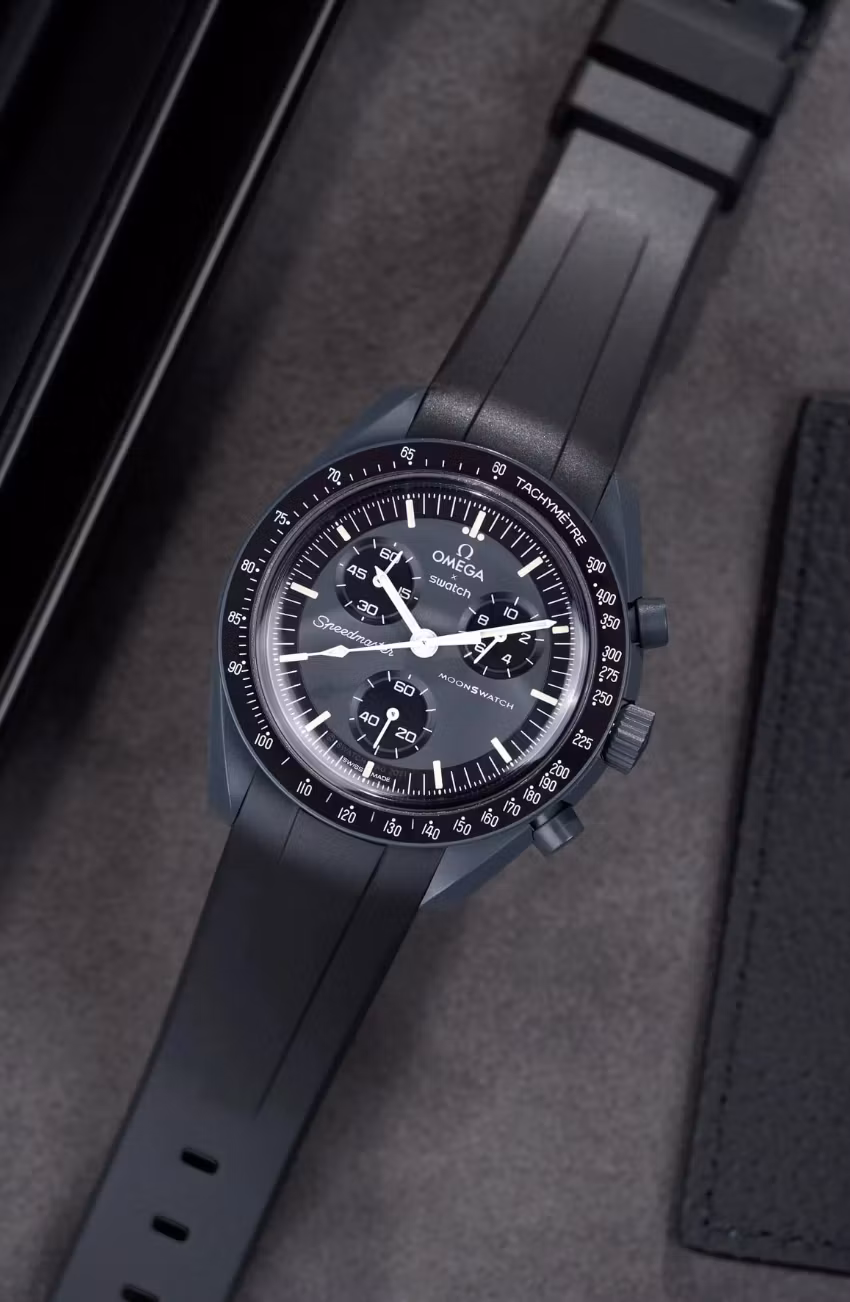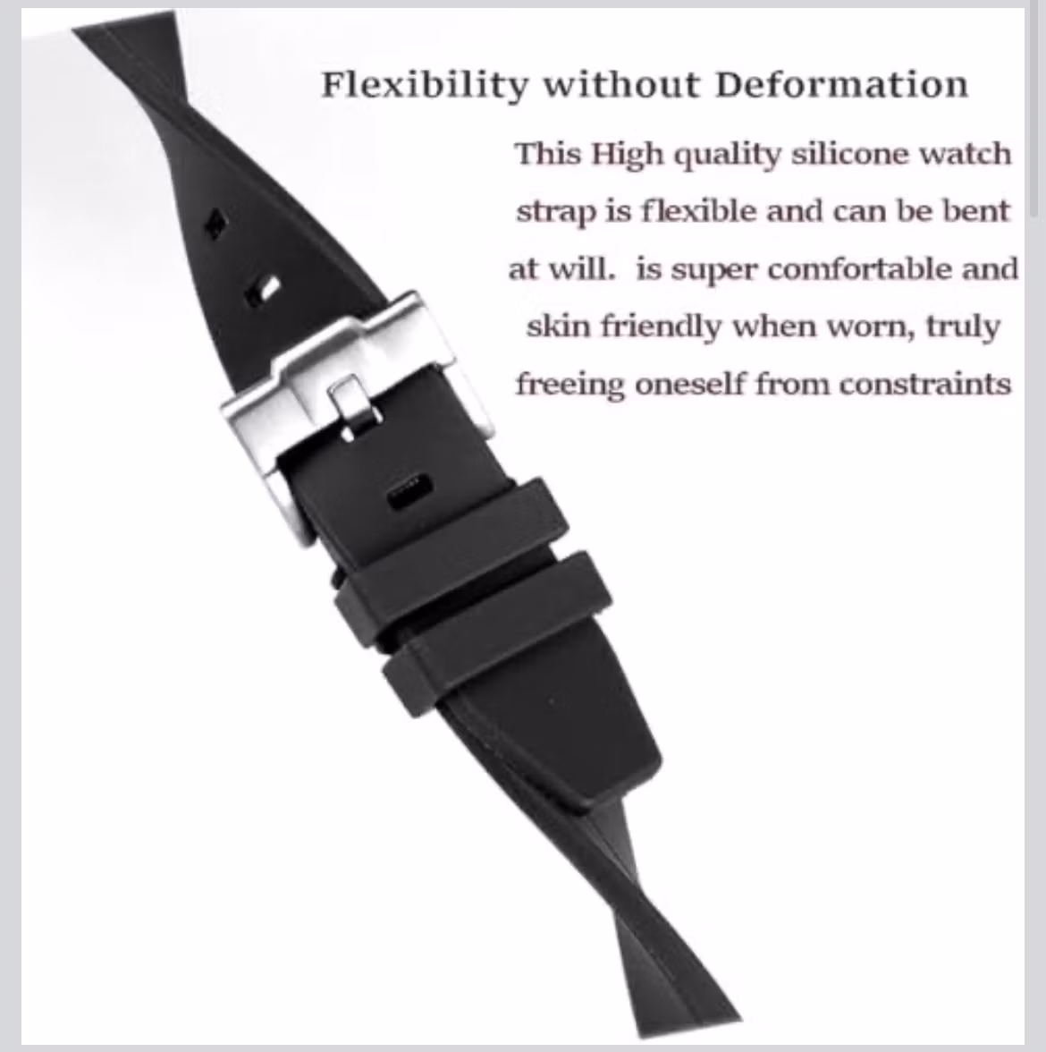 Skönt och snyggt gummiarmband för klockor med 20 mm bredd mellan bandhornen (lug to lug). Exempelvis Moonswatch och olika modeller från bland annat Omega, Breitling och Rolex. Armbandet är en ”curved” modell för bästa passform mot boetten.