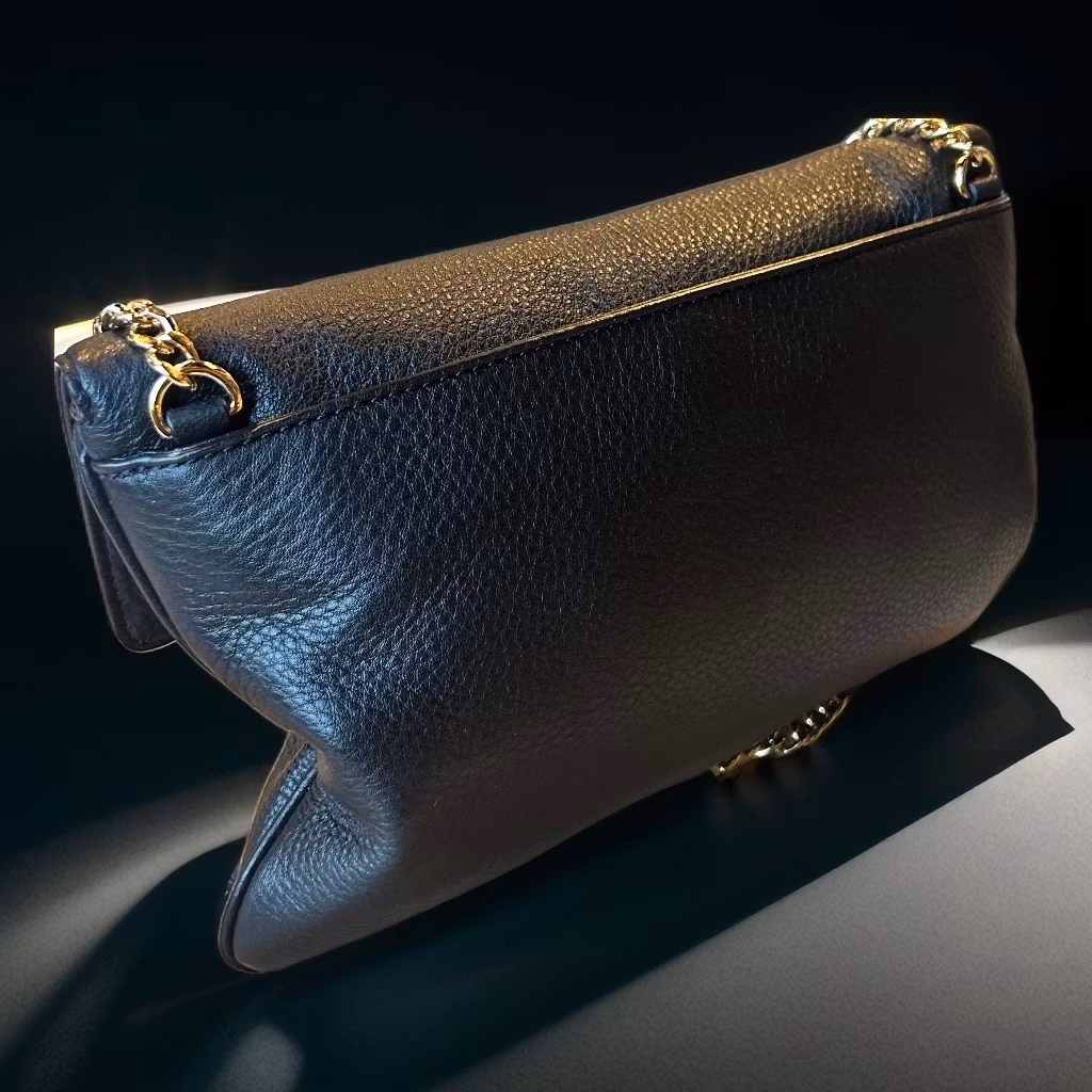 Klassisk Michael Kore vÀska i svart lÀder med gulddetaljer.